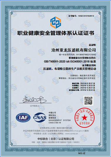 職業(yè)健康安全管理體系認證證書-