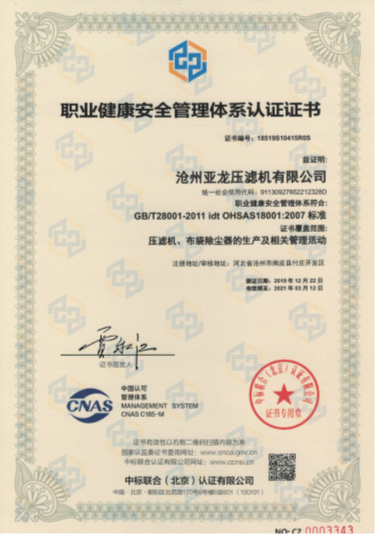 職業(yè)健康安全管理體系認證證書