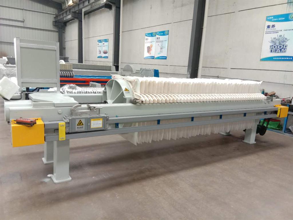 過濾機是使用過濾介質把容器分為上、下腔的過濾器。隔膜壓濾機濾板與濾布之間加裝了一層彈性膜的壓濾機。使用過程中,當入料結束,可將高壓流體或氣體介質注入隔膜板中,這時整張隔膜_會鼓起壓迫濾餅,進而實現(xiàn)濾餅的進一步脫水,_是通常講的壓榨過濾。濾液由上腔進入,在壓力作用下通過過濾介質進入下腔成為濾液,固體顆粒被截留在過濾介質表面形成濾渣。一段時間后,大量的濾渣的堆積形成濾餅,這時_需要我們停機操作,經(jīng)濾渣經(jīng)理干凈,檢查一下過濾介質是否損壞,然后再進入下一個循環(huán)階段。